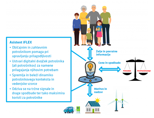 Cilj projekta iFLEX, ki se je pričel novembra 2020, je opolnomočiti potrošnike na področju fleksibilnosti omrežja, tako da jim čim bolj olajša sodelovanje pri programih celostnega upravljanja z energijo ter upravljanja odjema (DSM/DR) z ustvarjanjem tehnoloških pogojev za večjo uveljavitev razpršenih obnovljivih virov energije. Osrednji koncept projekta je iFLEX Assistant, novi programski agent, ki deluje med potrošniki in njihovimi energetskimi sistemi ter različnimi zainteresiranimi stranmi na trgu z električno energijo.