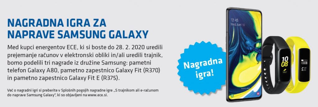 Uredite si trajnik in/ali e-račun za vaše gospodinjstvo in sodelujte v nagradni igri za naprave Samsung Galaxy. Nagradna igra poteka od 15.11.2019 do vključno 28.2.2020. Več o pogojih nagradne igre si preberite tukaj.